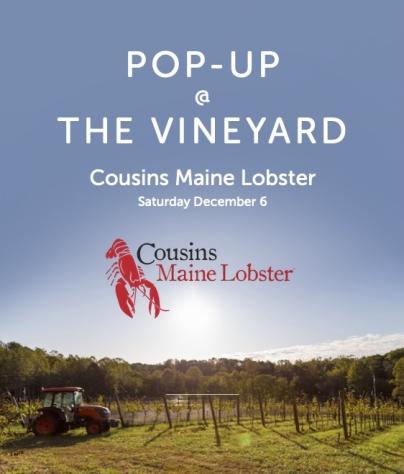 Join us for our Holiday Arts & Vines on Saturday, December 6th, from noon to 6 pm. Cousins Maine Lobster Food Truck will be here, along with artisans Christina Boy Design, Gary Grant, Phineas Rose ...